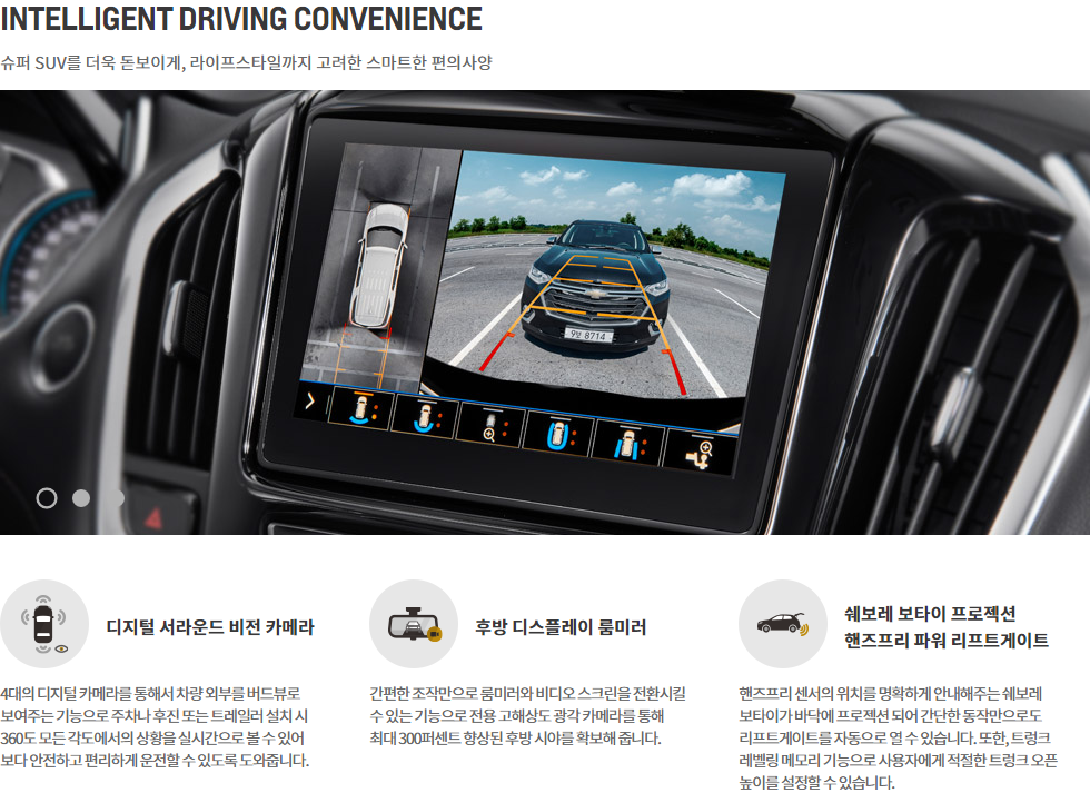 자, 그렇다면 지금부터 쉐보레 트래버스에 대한 각종 편의사양과 멀티미디어를 살펴보도록 하겠습니다.