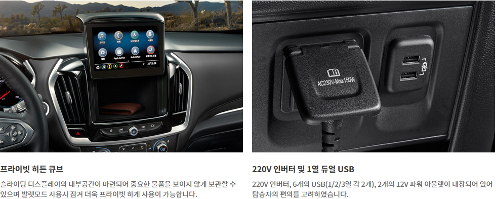 따라서 다른 사람이 운전하거나 발렛을 맡길 때 중요물품을 안전하게 보관할 수 있는 쉐보레 트래버스만의 특장점입니다.