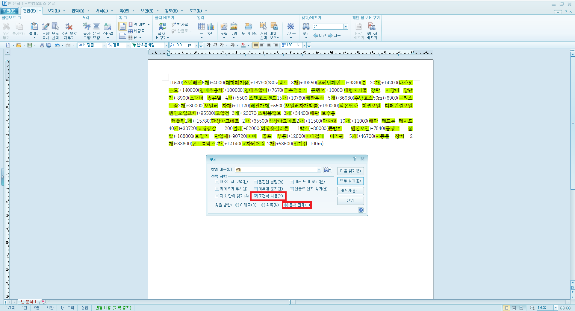 [조건식 사용]은 [찾기] 대화 상자에서만 사용할 수 있는 항목입니다.